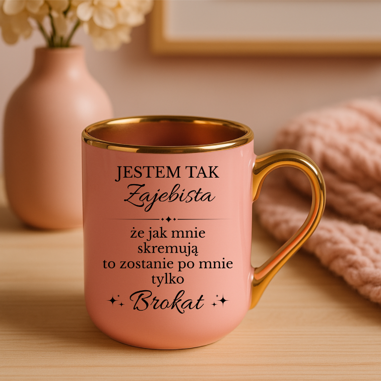 KUBEK RÓŻOWY ELEGANT JESTEM ZAJEBISTA BROKAT